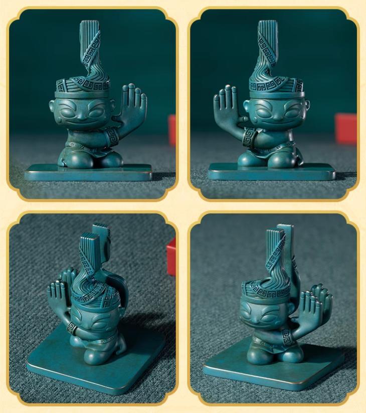 - This imitation Sanxingdui kneeling portrait photo frame craft, the frame base is inspired by the mysterious and solemn bronze head-turning kneeling portrait in the Sanxingdui ruins.