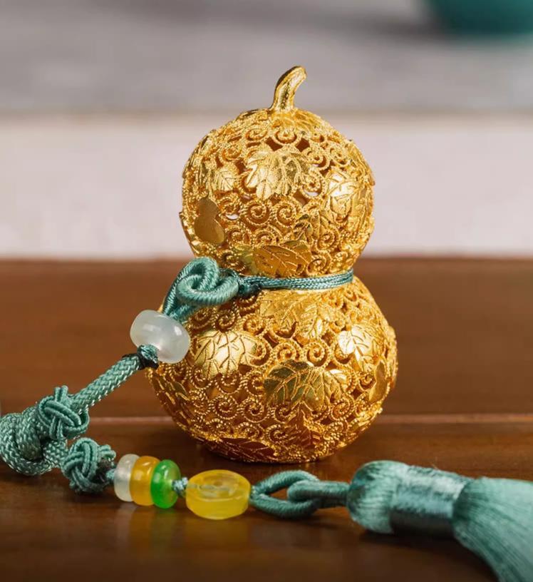 - In Chinese culture, gourds symbolize good fortune, abundance and good luck. This golden filigree gourd pendant is not only an exquisite ornament, but also a gift with beautiful meaning. Whether it is given to relatives, friends or yourself, it can bring good luck and happiness.