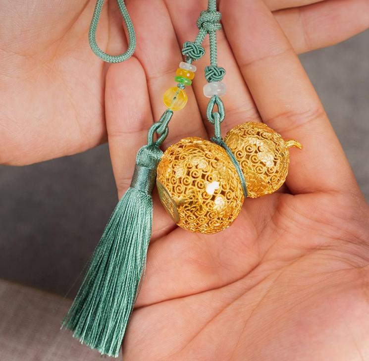 - The exquisite gourd shape, filigree hollow craftsmanship, emerald green silk thread and green tassels are hand-woven by skilled craftsmen. The silk thread is strong and beautiful, showing a luxurious temperament without losing the sense of fashion.