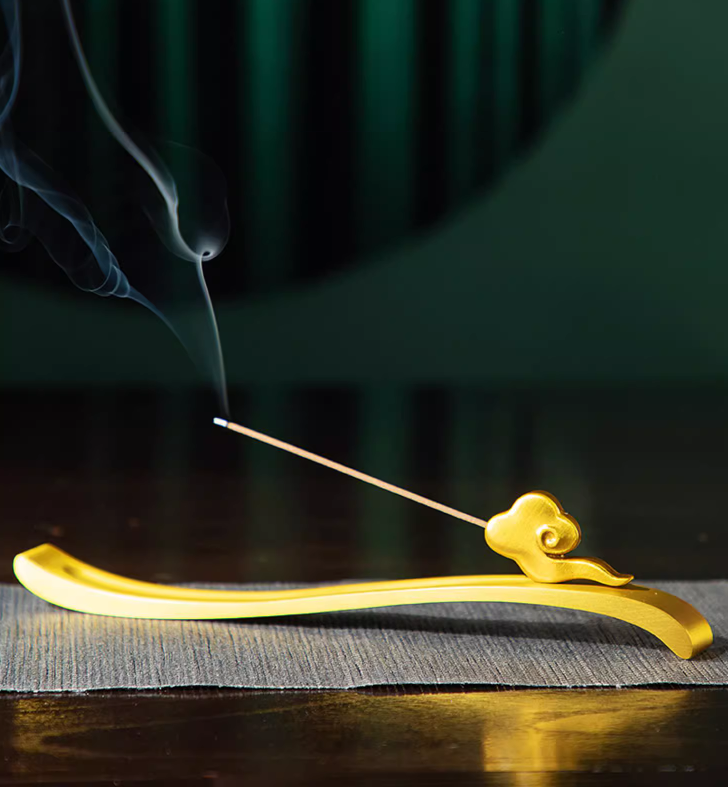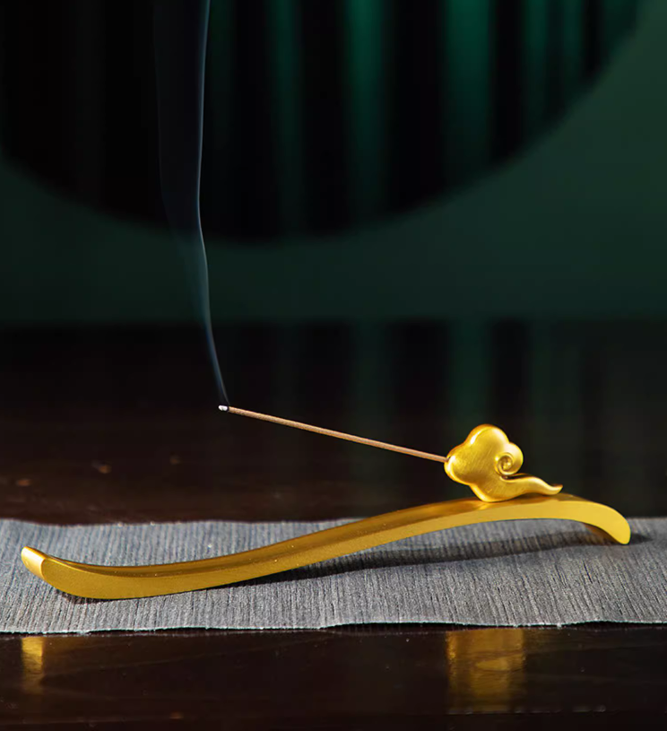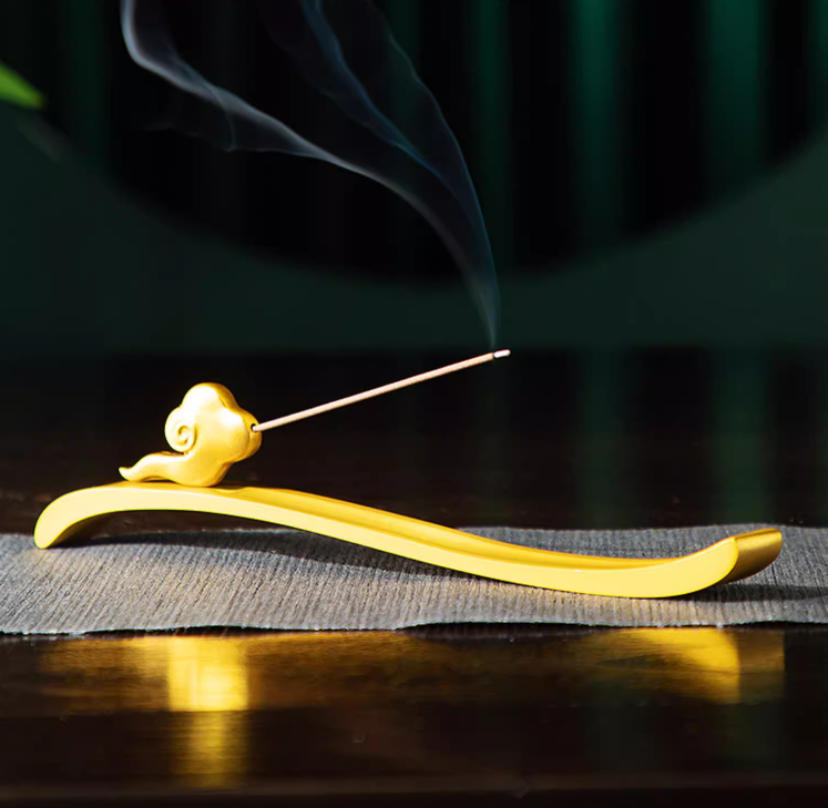 - The cute brass Ruyi Cloud Incense Holder can securely hold an incense stick, allowing the smoke to rise gracefully and fill the air with a relaxing aroma. Whether you want to create a peaceful, meditative atmosphere or simply enhance the ambience of your living space, this incense burner is the perfect choice.